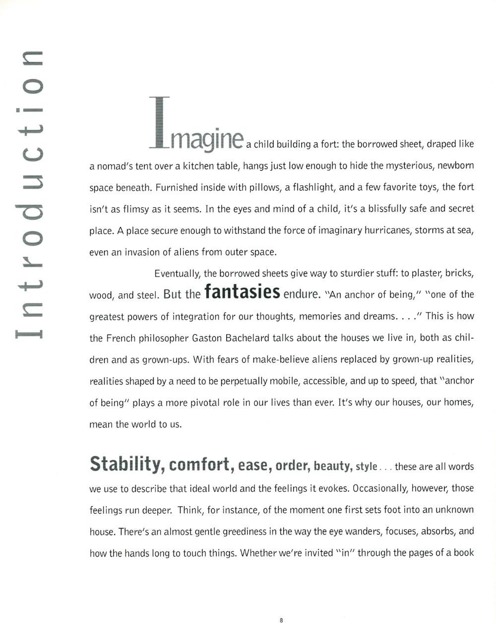 Imagine a child building a fort: the borrowed sheet, draped like a nomad's tent over a kitchen table, hangs just low enough to hide the mysterious, newborn space beneath. Furnished inside with pillows, a flashlight, and a few favorite toys, the fort isn't as flimsy as it seems. In the eyes and mind of a child, it's a blissfully safe and secret place. A place secure enough to withstand the force of imaginary hurricanes, storms at sea, even an invasion of aliens from outer space.